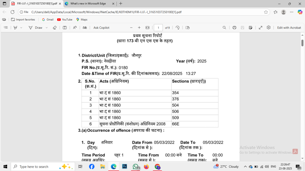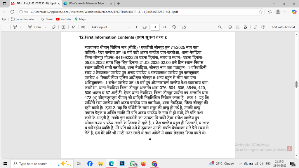 पीड़िता ने बताया कि कोर्ट के आदेश के बावजूद जौनपुर पुलिस मुकदमा दर्ज करने में आनाकानी कर रही थी। अंततः, उन्हें वाराणसी के डीआईजी के पास जाना पड़ा, जिनके हस्तक्षेप के बाद नेवढ़िया थाने में संबंधित धाराओं के तहत मुकदमा दर्ज किया गया।