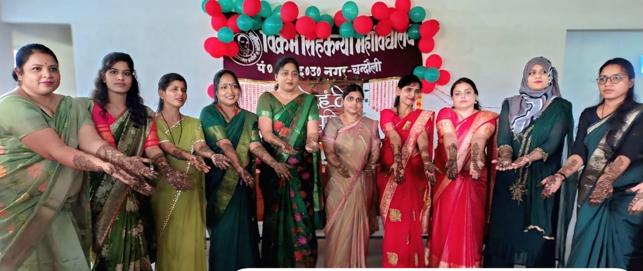 प्रतियोगिता का शुभारंभ मुख्य अतिथि प्रबंध समिति के सदस्या आशा यादव और दीपिका यादव व व्यवस्थापिका महोदया ,प्राचार्य डॉक्टर अनीता श्रीवास्तव तथा विभागाध्यक्षया गायत्री सिंह जी के द्वारा मां सरस्वती व स्वर्गीय विक्रम सिंह के चित्र पर माल्यार्पण व दीप प्रज्जवलित करके किया गया।प्रतियोगिता का समय एक घंटा रखा गया था। इस प्रतियोगिता में सभी छात्राओं ने एक से एक खूबसूरत व मनमोहक मेहंदी लगाकर अपनी सखियों और प्रवक्ताओं का हाथ सजा दिया। इस प्रतियोगिता के निर्णायक मंडल द्वारा स्नातक से बीए प्रथम सेमेस्टर की छात्रा जीनत अंसारी को प्रथम पुरस्कार व बीए थर्ड सेमेस्टर की छात्रा सृष्टि प्रजापति को द्वितीय पुरस्कार दिया गया।बी एड तथा डीएलएड से डीएलएड फर्स्ट सेमेस्टर की छात्रा मुस्कान को प्रथम पुरस्कार व डीएलएड प्रथम सेमेस्टर की छात्रा प्रीति भारती को द्वितीय पुरस्कार दिया गया। तत्पश्चात व्यवस्थापिका, प्राचार्या व विभागाध्यक्षया ने अपने संबोधन से छात्राओं का उत्साह वर्धन किया। इस अवसर पर सभी महिला प्रवक्ता डॉक्टर अनीता अग्रवाल, डॉक्टर हेमा गुप्ता, डॉक्टर यास्मीन बानो, डॉक्टर लक्ष्मी चटर्जी, श्रीमती तारा, ममता यादव, रीना सिंह, सादिया रियाज, शिल्पा यादव, सुश्री मिली उपाध्याय, सुश्री समा परवीन, नाज़नीन, सुश्री प्रतिभा, सुश्री संध्या कुमारी उपस्थित रही।