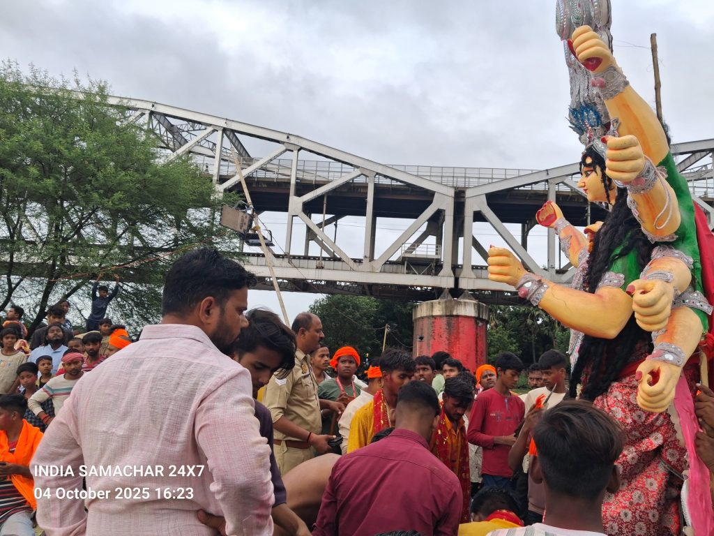 क्षेत्र के पड़ाव स्थित गंगा नदी के किनारे मूर्ति विसर्जन के लिए नगर निगम की ओर से बनाये गए कुंड में फैली गंदगी और कुंड में पानी नही होने से नाराज श्रद्धालुओं ने शनिवार को वाराणसी नगर निगम विभाग के अधिकारियों और जेई के खिलाफ जमकर प्रदर्शन कर नारेबाजी किया और विसर्जन करने से इनकार कर दिया। पंडाल आयोजकों का कहना है कि नगर निगम की ओर से ठेकेदार के माध्यम से लाखों रुपये की लागत से मूर्ति विसर्जन के लिए कुंड बनाये गए है। मूर्ति विसर्जन के दौरान कुंड में फैली गंदगी और पानी नही होना आस्था से खिलवाड़ हुआ है।