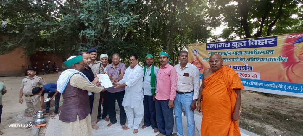 ।वार्ता विफल होने के बाद, धरना दे रहे लोगों ने अपनी मांगों को लेकर महामहिम राष्ट्रपति महोदय के नाम एक ज्ञापन एसडीएम महोदय को सौंपा। ज्ञापन में भूमि अधिग्रहण को रोकने और बौद्ध विहार तथा लोना माता समाधि स्थल को सुरक्षित रखने की मांग की गई है।धरने में मुख्य रूप से अमरेश प्रसाद कुशवाहा, गोपाल मौर्य, हेमंत कुशवाहा, बच्चे लाल, वीरेंद्र मौर्य, विनय एडवोकेट, पूज्य भन्ते बुद्ध ज्योति, भन्ते ज्ञान ज्योति, प्रभाकर मौर्य, जिउत मौर्य, जवाहर विश्वकर्मा, छोटेलाल चौहान, भारतीय किसान यूनियन चंदौली के सदस्य, मस्तराम मौर्य, चंद्रप्रकाश मौर्य, सतनारायण मौर्य, अशोक मौर्य, इंद्र कुमार मौर्य और संतोष मौर्य सहित अन्य लोग भारी संख्या में मौजूद थे।प्रदर्शनकारियों ने दोहराया है कि जब तक उनकी मांगें पूरी नहीं होतीं, यह अनिश्चितकालीन धरना जारी रहेगा।
