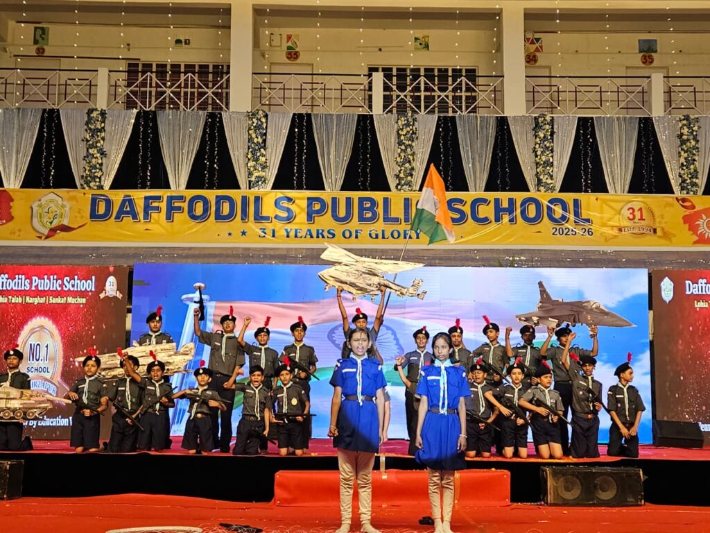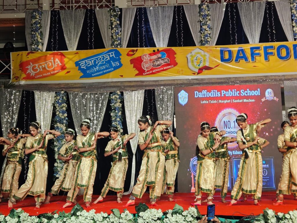 रविवार को डैफोडिल्स पब्लिक स्कूल, संकट मोचन में भव्य वार्षिक उत्सव मेमोरिया : जश्न-ए-बचपन” का आयोजन अत्यंत हर्षोल्लास के साथ किया गया। कार्यक्रम की शुरुआत स्काउट एवं गाइड के छात्रों द्वारा मुख्य अतिथियों और स्कूल प्रबंधन का मुख्य द्वार से कार्यक्रम स्थल तक भव्य स्वागत के साथ हुई। छोटे-छोटे बच्चों ने रंग-बिरंगे सुन्दर झंडों के साथ सभी का मन मोह लिया।इसके बाद विद्यालय के ऑर्केस्ट्रा एवं संगीत विभाग के विद्यार्थियों ने मधुर वाद्य-यंत्रों की सुरीली प्रस्तुति दी, जिसकी सभी ने सराहना की। स्कूल बैंड और संगीत छात्रों ने पूरे
