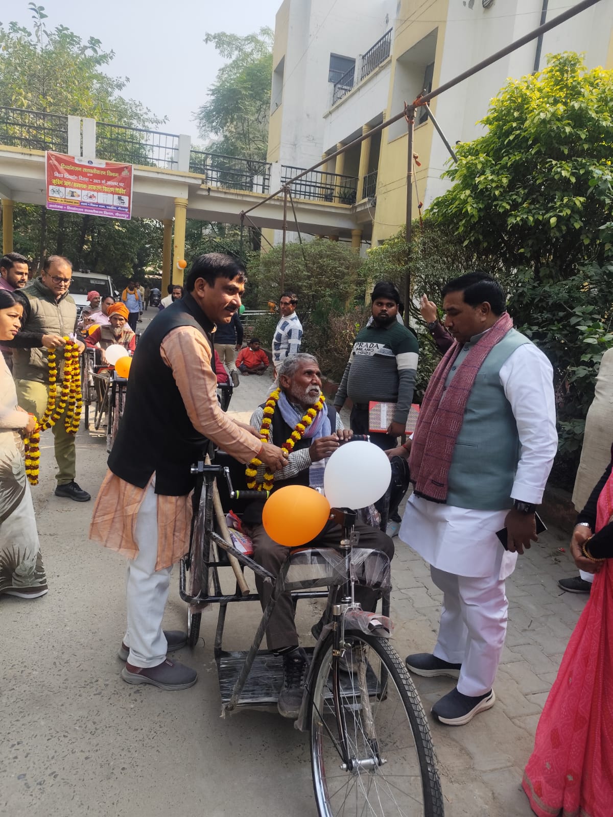 मीरजापुर 03 दिसम्बर 2025- शासन एवं निदेशालय, दिव्यांगजन सशक्तीकरण विभाग, उ0प्र0, लखनऊ के निर्देशानुसार विश्व दिव्यांग दिवस के अवसर पर जनपद स्तर पर विकास भवन परिसर में कृत्रिम अंग एवं सहायक उपकरण वितरण शिविर का आयोजन किया गया। मा0 मुख्यमंत्री जी उ0प्र0 श्री योगी आदित्य नाथ, जी के कार्यक्रम का सजीव प्रसारण भी किया गया। आयोजित कार्यक्रम में मा0 विधायक मड़िहान रमाशंकर सिंह पटेल, मा0 विधायक मझवां, सुचिस्मिता मौर्या, मा0 विधायक छानबे, रिंकी कोल, अध्यक्ष नगर पालिका परिषद मीरजापुर श्याम सुन्दर केशरी, के कर कमलों द्वारा 83 दिव्यांगजनों को कृत्रिम अंग एवं सहायक उपकरण योजनान्तर्गत (04-व्हीलचेयर, 01- स्मार्ट केन, 18-एम0आर0कीट, 25-कान की मशीन एवं 35 ट्राईसाइकिल) का वितरण किया गया। साथ ही कार्यक्रम में मुख्य विकास अधिकारी विशाल कुमार, परियोजना निदेशक डी0आर0डी0ए0 धर्मजीत सिंह, उपनिदेशक, दिव्यांगजन सशक्तीकरण विभाग विन्ध्याचल-मण्डल, जिला दिव्यांगजन सशक्तीकरण अधिकारी एवं अन्य बचपन डे-केयर सेन्टर के कर्मचारियों के साथ अन्य विभागीय कर्मचारी भी उपस्थित रहें।