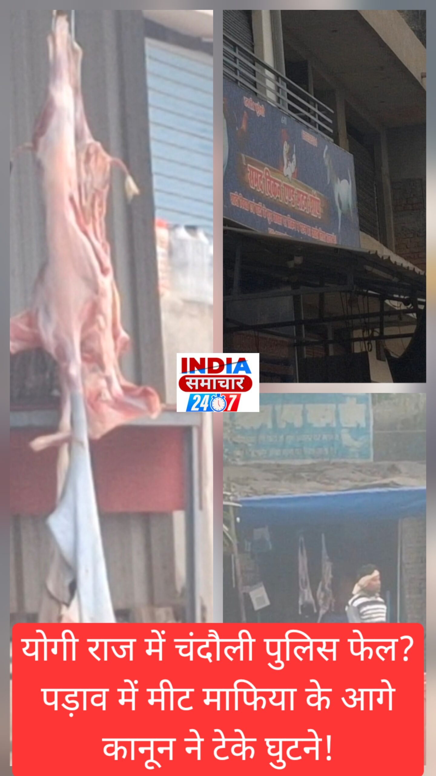 मुगलसराय (चंदौली)। शासन के सख्त निर्देशों के बावजूद मुगलसराय थाना क्षेत्र के जलीलपुर चौकी अंतर्गत पड़ाव क्षेत्र में मीट व्यापारियों की मनमानी चरम पर है। यहाँ कानून का खौफ इस कदर खत्म हो चुका है कि व्यापारी खुलेआम सड़कों पर मांस काटकर लटका रहे हैं, जिससे न केवल नियमों की धज्जियां उड़ रही हैं, बल्कि राहगीरों का जीना भी मुहाल हो गया है।