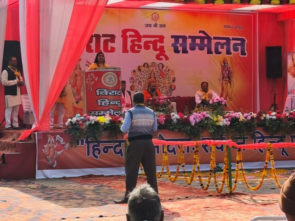 छतारी (बुलंदशहर): थाना क्षेत्र के छतारी दोराहे पर स्थित गांधी इंटर कॉलेज के प्रांगण में ‘विराट हिंदू सम्मेलन’ का भव्य आयोजन किया गया। कार्यक्रम की शुरुआत सरस्वती विद्या मंदिर की छात्राओं द्वारा प्रस्तुत मधुर स्वागत गान से हुई। इस सम्मेलन का मुख्य उद्देश्य हिंदू समाज को एकजुट करना और सामाजिक कुरीतियों को दूर करना रहा।
