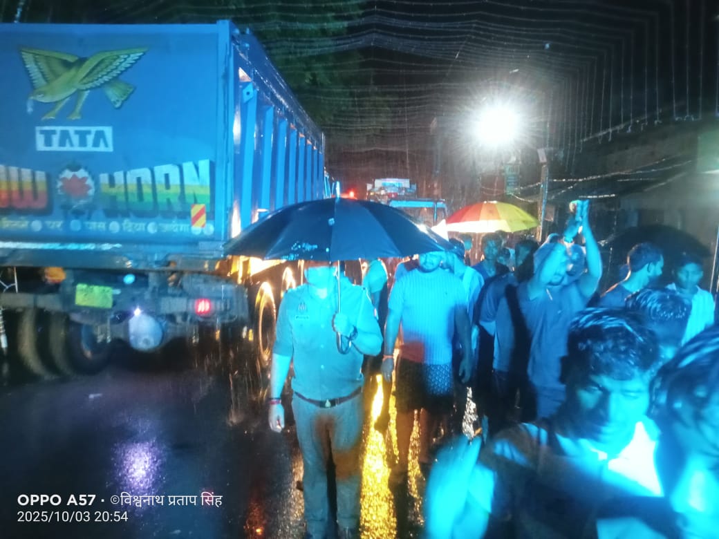 कर्तव्य निष्ठा की मिसाल: मूसलाधार बारिश भी नहीं रोक पाई विसर्जन, चौकी प्रभारी ने माँ के रथ को दिया सहारा